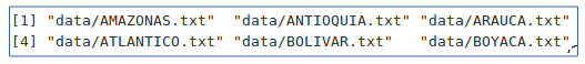 Para comenzar, se almacena las rutas de los archivos de texto en una variable llamada paths. Esta lista será la ruta para cargar cada Plan de Desarrollo. Los nombres de cada Departamento se almacenarán en la variable departments.
