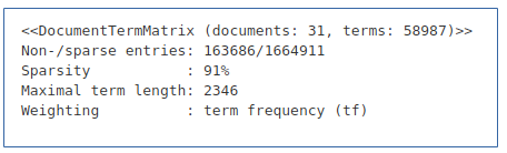 doc <- cast_dtm(data = d, document = depart, term = word, value = V1, weighting = tm::weightTf)
